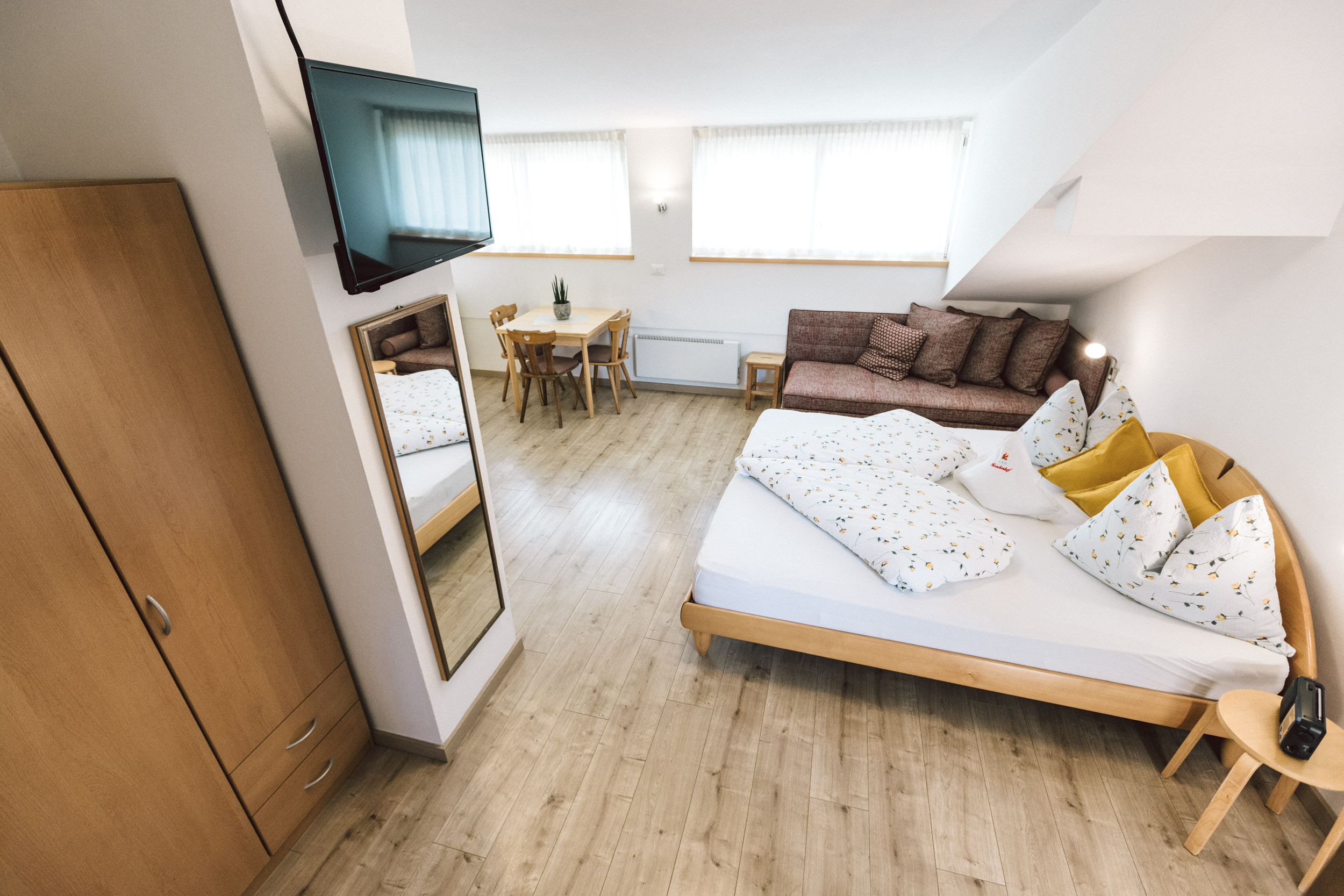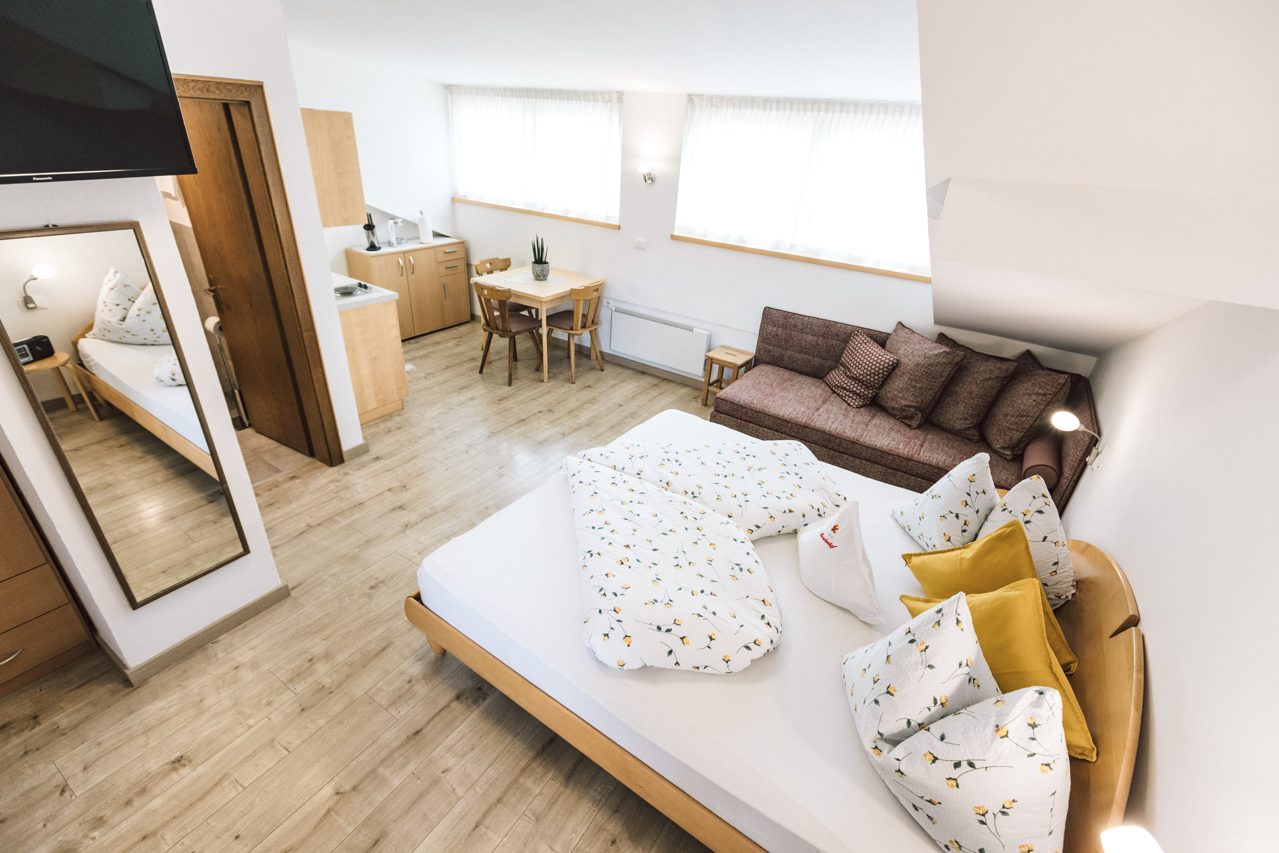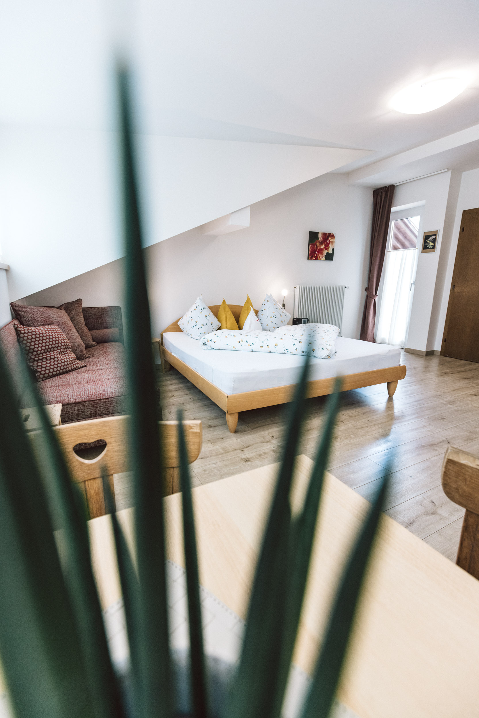 Ganz egal, ob Du es lieber geräumig magst, oder kuschelig – bei uns findest Du das passende für Dich: unsere liebevoll eingerichtete Ferienwohnung für bis zu fünf Personen, das helle Hofstudio für entspannte Tage, oder ein gemütliches Zimmer mit Frühstück – welches Dir täglich den Geschmack Südtirols serviert.