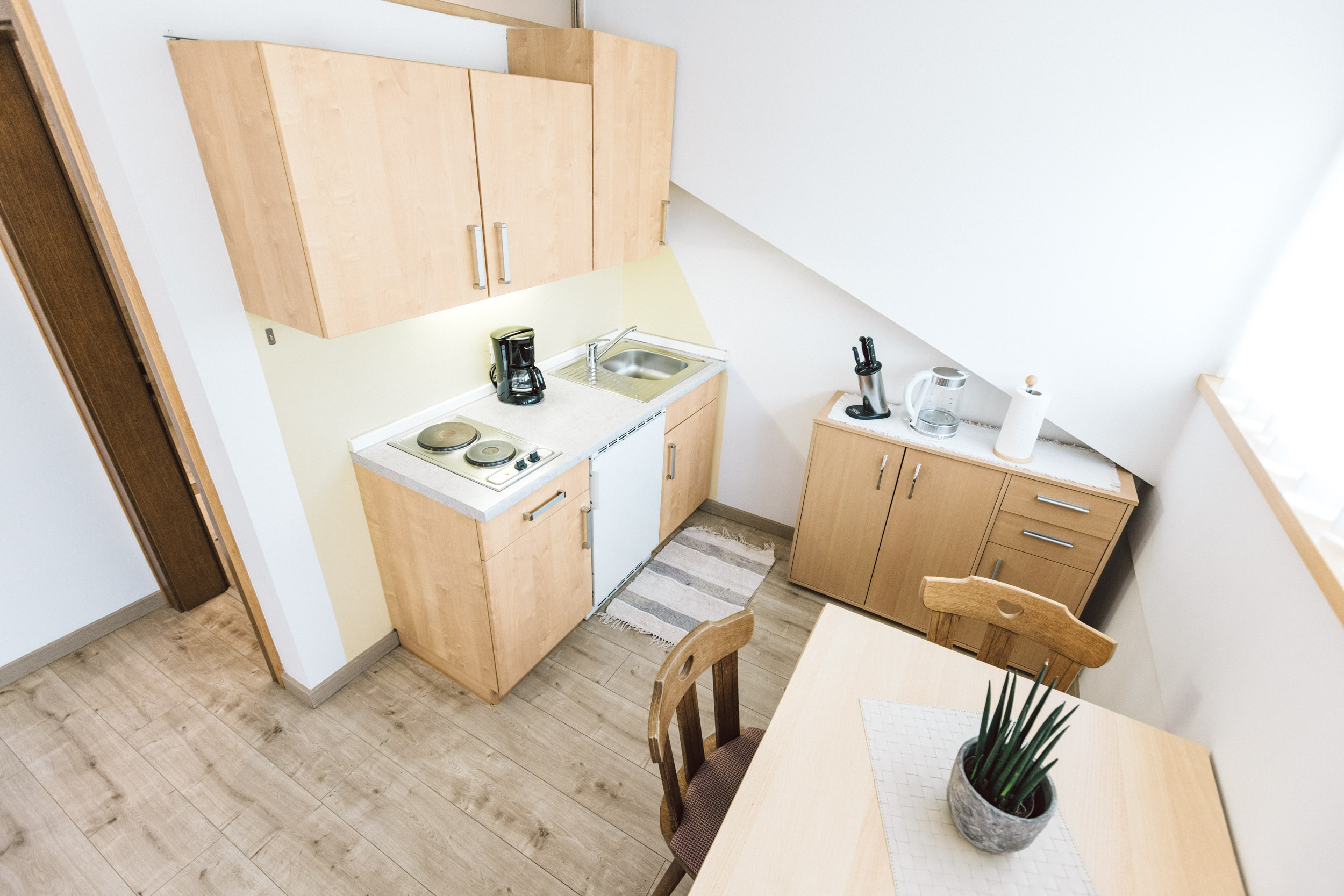 - Kühlschrank, Spüle, Wasserkocher, Kaffeemaschine